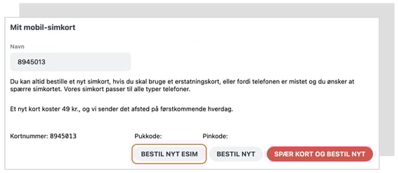 Det koster kr. 49,- at bestille et erstatningssimkort.